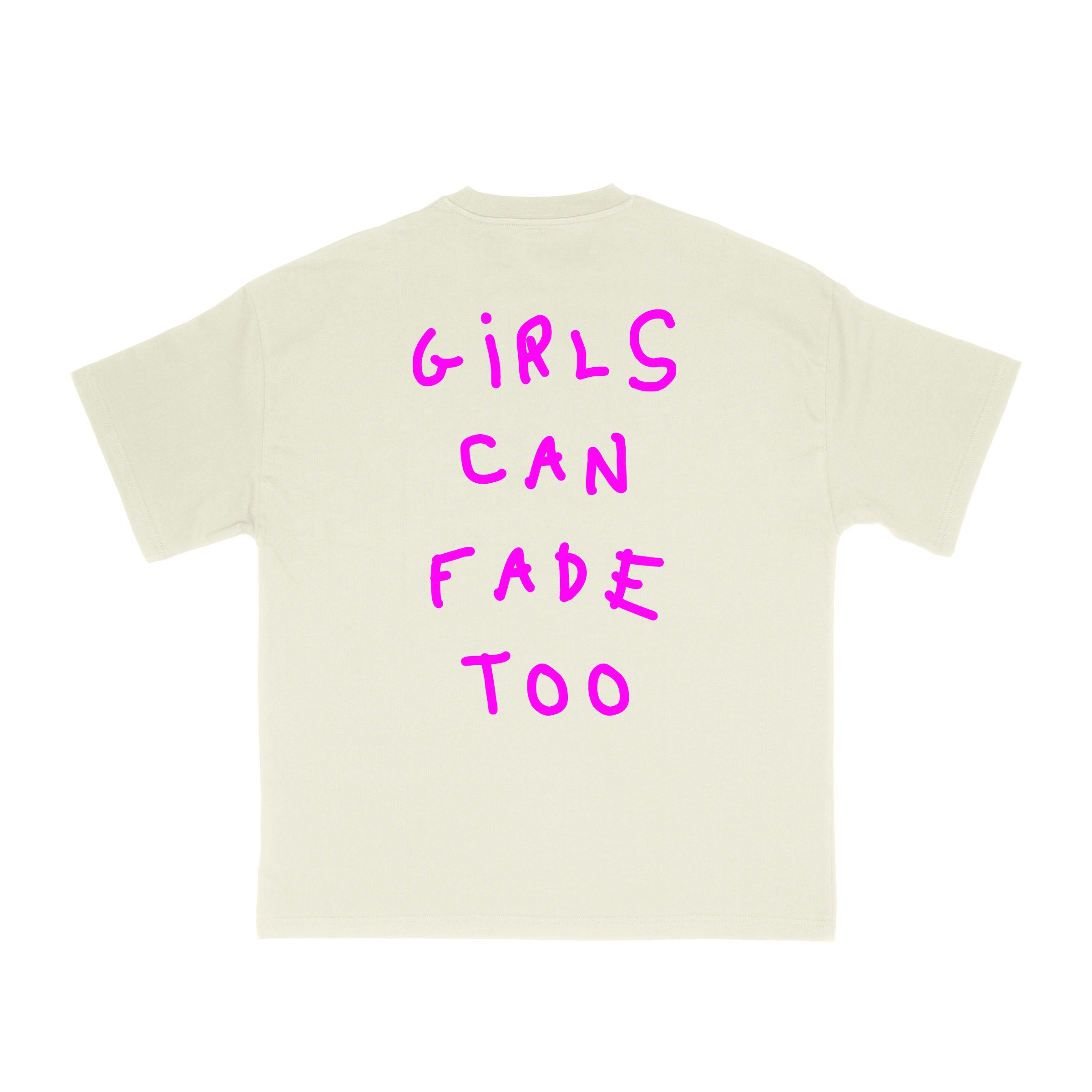 Off white shirt with a pink design print.