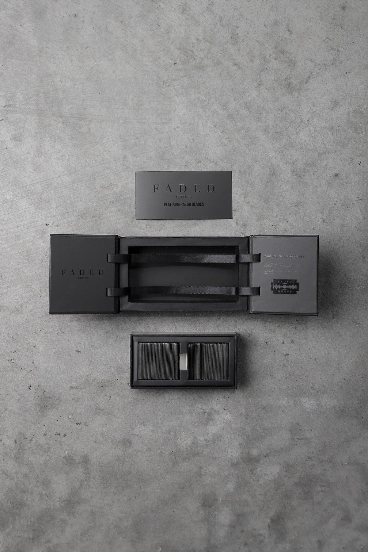 Bienvenido a la cima de la excelencia en el afeitado con las hojas de afeitar de doble filo Faded Culture. Envasadas en una elegante caja con dos puertas con alas, nuestras hojas no solo ofrecen un rendimiento excepcional, sino también un toque de lujo. Al abrir la caja, observe cómo las hojas se elevan elegantemente desde el interior, lo que indica el comienzo de una experiencia de afeitado superior.